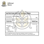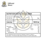 Almond tersedia dalam 3 ukuran 250g, 500g dan 1000g."