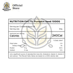 Deskripsi: Biji Labu atau yang bisa disebut juga dengan Pumpkin Seed merupakan superfood berkhasiat tinggi dan bisa menjadi cemilan sehat untuk anda. Seperti namanya biji ini berasal dari buah labu dengan karakteristik pipih datar dan berbentuk ovar berwarna putih. Pumpkin seeds dipenuhi dengan Zat Besi, Zinc, Kalsium, dan Magnesium, yang merupakan 4 macam mineral penting dalam tubuh kita. Pumpkin seed juga merupakan sumber Protein dan Asam Lemak Essential Omega 3